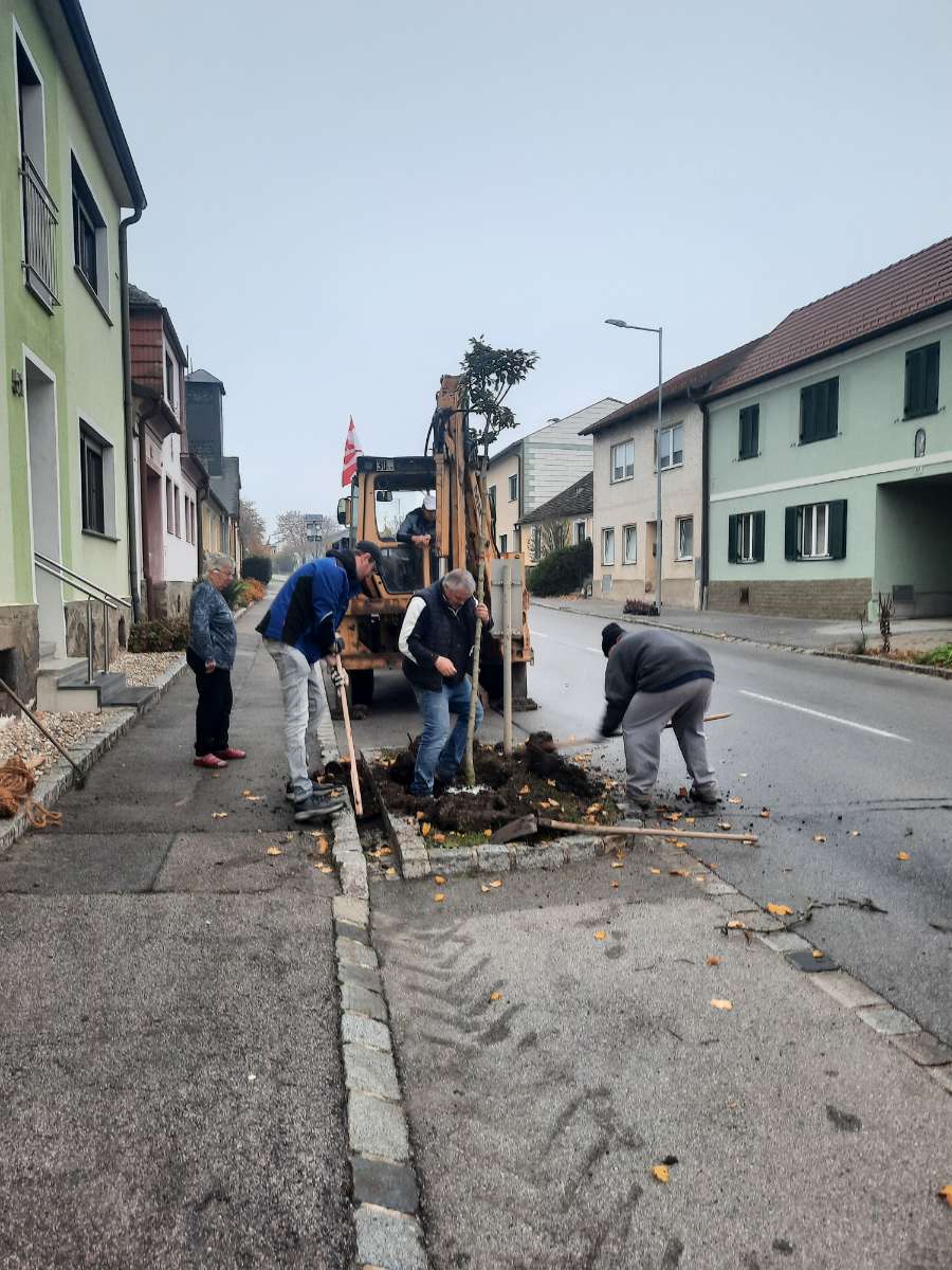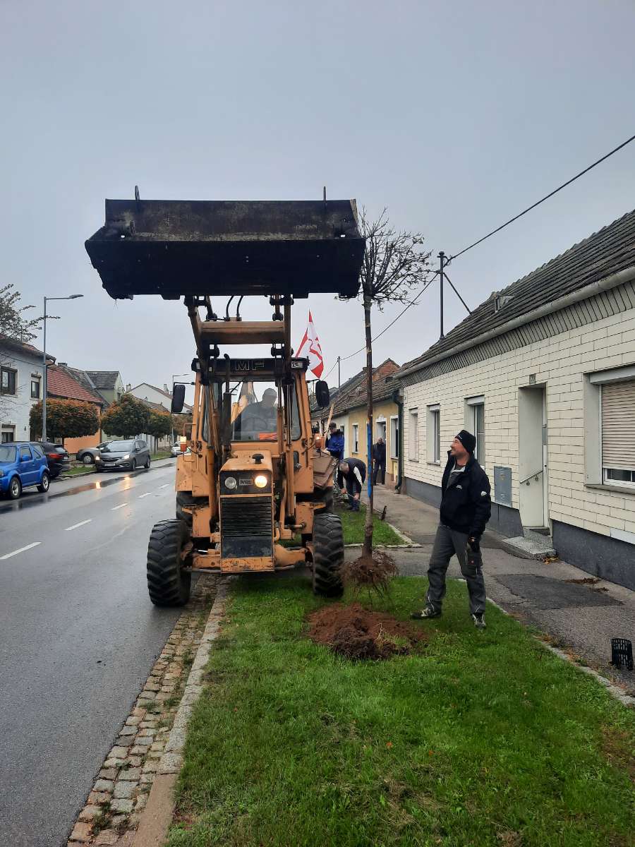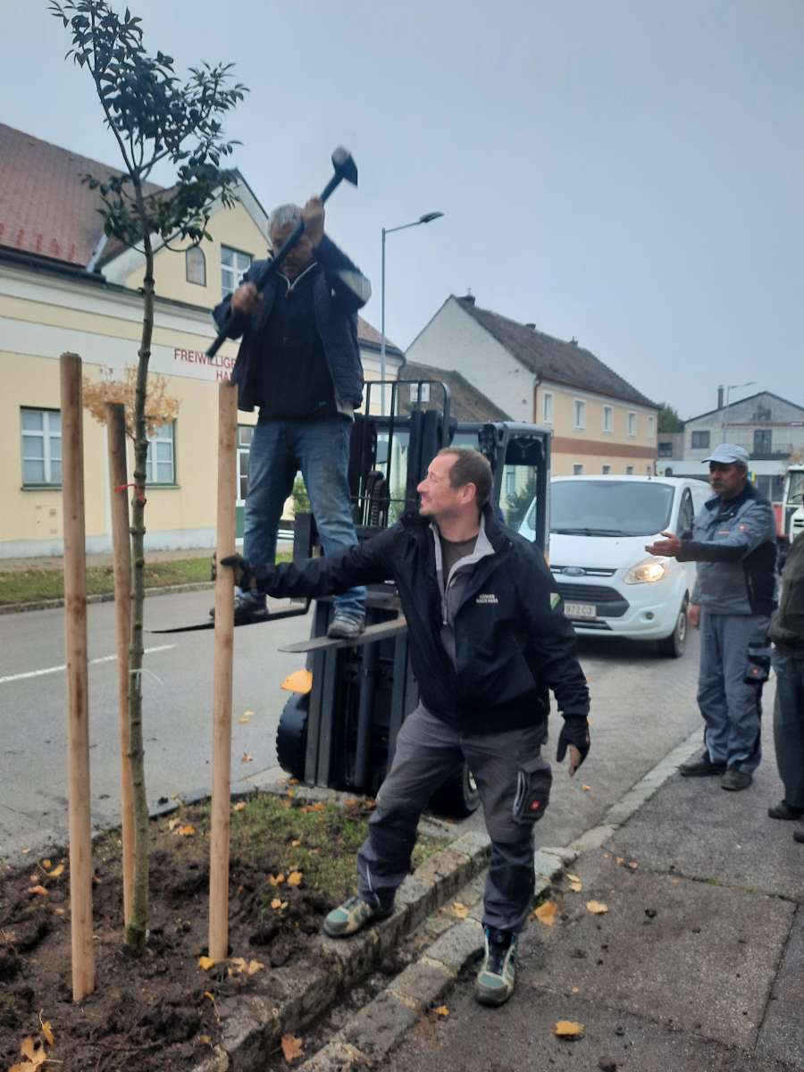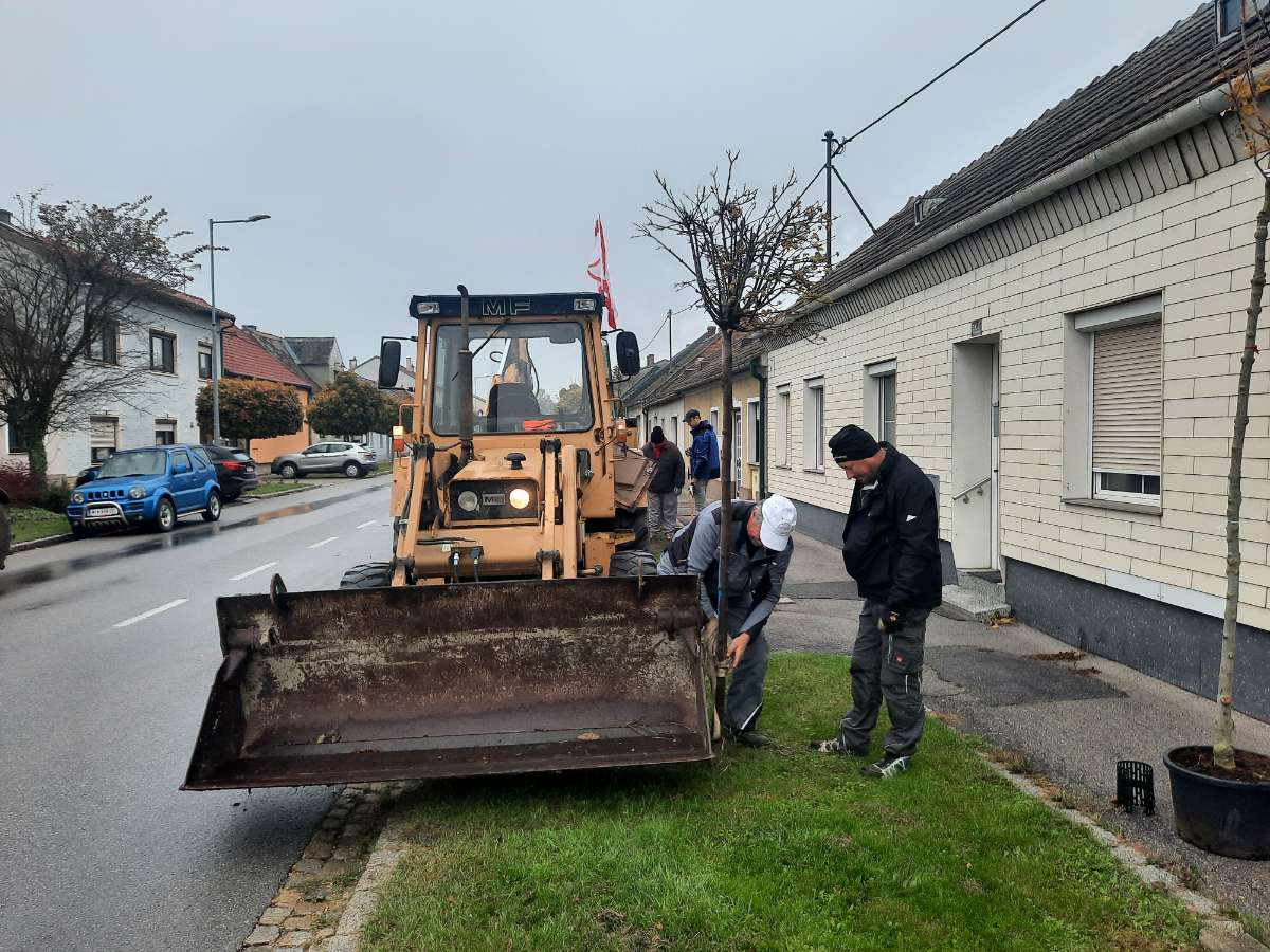 Die Dorfgemeinschaft Hanfthal hat für den österreichischen Nationalfeiertag am 26. Oktober 2024 zum Arbeitseinsatz aufgerufen. Der Vormittag stand ganz im Zeichen der Neupflanzung bzw. Ersatzpflanzung von Bäumen. In Absprache mit der Stadtgemeinde Laa wurden entlang der Hauptstraße neue Bäume gepflanzt bzw. kaputte Bäume ersetzt. Dabei wurden die bisherigen Kugelahornbäume durch klimaresistente Kugeleschenbäume ersetzt. Zusätzlich wurden am Thayaweg Kirschenbäume gepflanzt. Der von der Dorfgemeinschaft Hanfthal erst kürzlich erworbene Baggerlader leistete dabei wertvolle Dienste. Insgesamt wurden am Vormittag 12 Bäume gepflanzt. Nach dem gemeinsamen Mittagessen mit Feuerwehrhaus wurden am Nachmittag noch die Sitzgelegenheiten im Dorf und im Flur eingesammelt und im Dorfstadl zur Überwinterung eingestellt. Die Dorfgemeinschaft Hanfthal bedankt sich bei allen freiwilligen Helfern für den erfolgreichen Arbeitseinsatz.