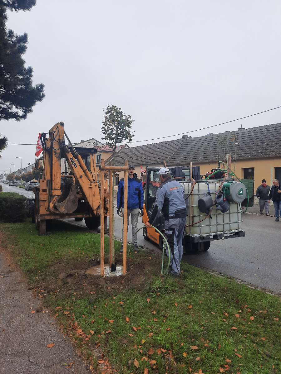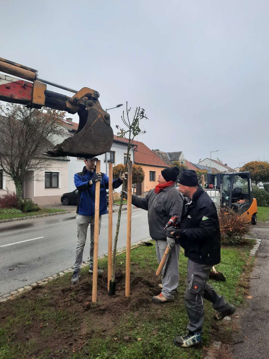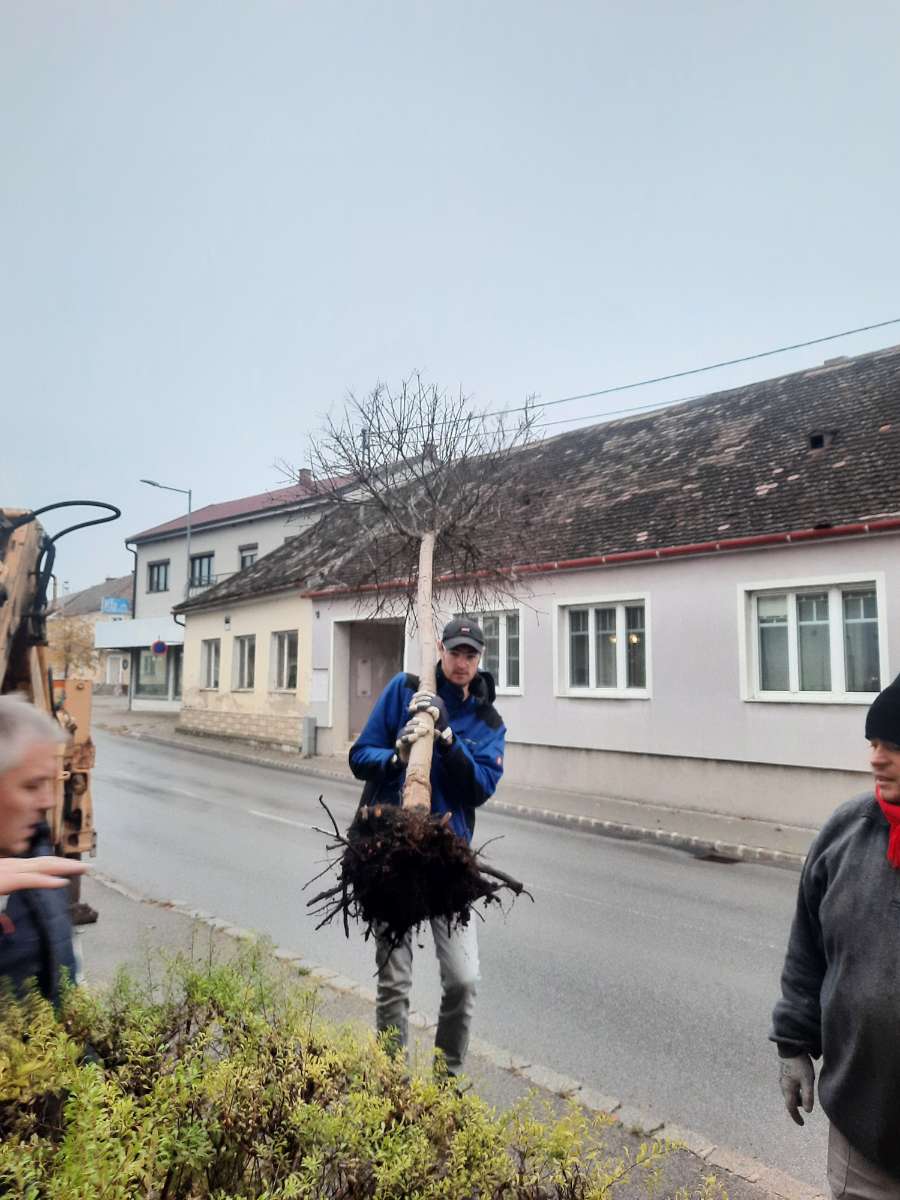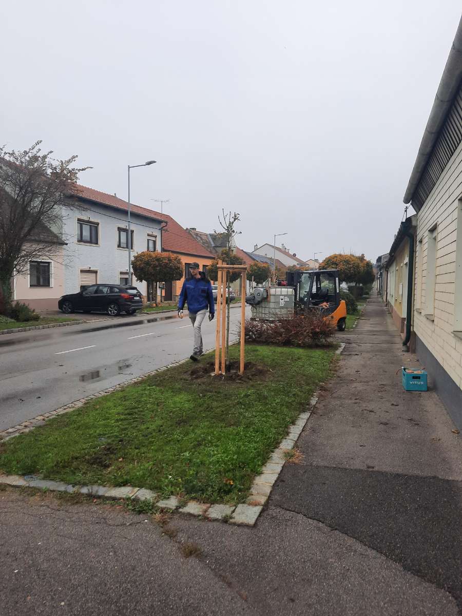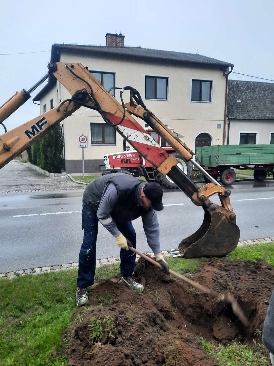 Die Dorfgemeinschaft Hanfthal hat für den österreichischen Nationalfeiertag am 26. Oktober 2024 zum Arbeitseinsatz aufgerufen. Der Vormittag stand ganz im Zeichen der Neupflanzung bzw. Ersatzpflanzung von Bäumen. In Absprache mit der Stadtgemeinde Laa wurden entlang der Hauptstraße neue Bäume gepflanzt bzw. kaputte Bäume ersetzt. Dabei wurden die bisherigen Kugelahornbäume durch klimaresistente Kugeleschenbäume ersetzt. Zusätzlich wurden am Thayaweg Kirschenbäume gepflanzt. Der von der Dorfgemeinschaft Hanfthal erst kürzlich erworbene Baggerlader leistete dabei wertvolle Dienste. Insgesamt wurden am Vormittag 12 Bäume gepflanzt. Nach dem gemeinsamen Mittagessen mit Feuerwehrhaus wurden am Nachmittag noch die Sitzgelegenheiten im Dorf und im Flur eingesammelt und im Dorfstadl zur Überwinterung eingestellt. Die Dorfgemeinschaft Hanfthal bedankt sich bei allen freiwilligen Helfern für den erfolgreichen Arbeitseinsatz.
