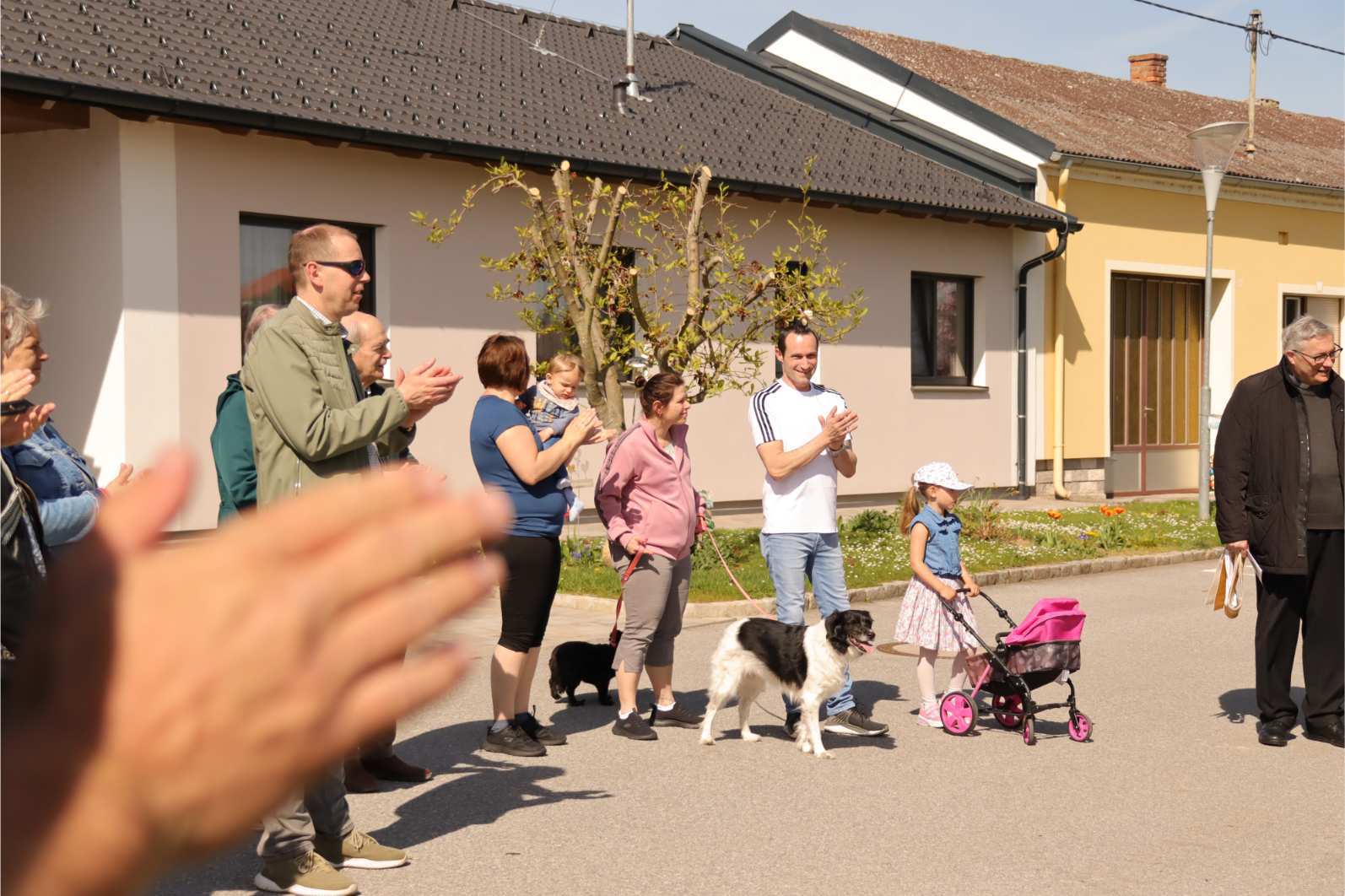 Pfarrer Nicolaas Jansens segnete die Familien und den Jahrgangsbaum. Zahlreiche Verwandte und Besucher verfolgten das Pflanzen am Rundanger. Anschließend wurde auf Einladung der Dorfgemeinschaft Hanfthal bei einer Jause gemeinsam mit den Kindern und Verwandten in gemütlicher Runde gefeiert.