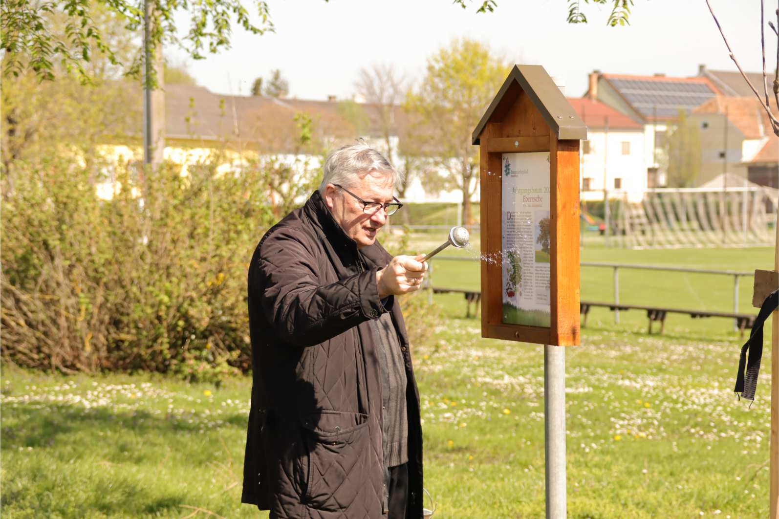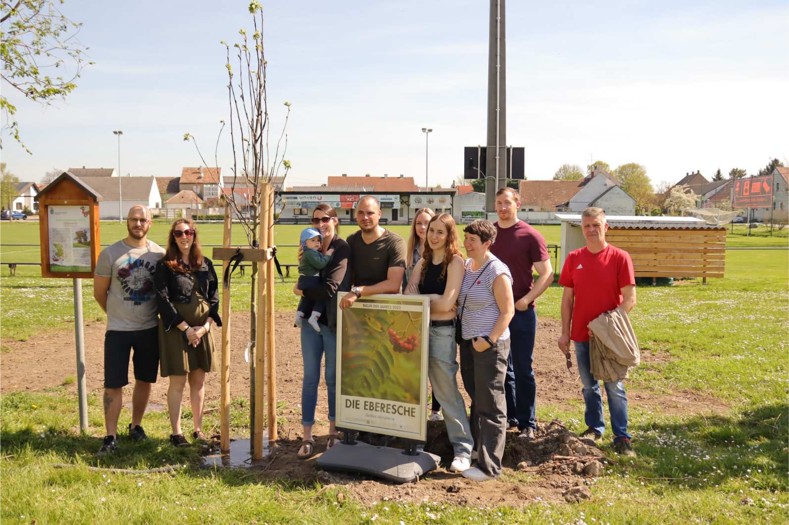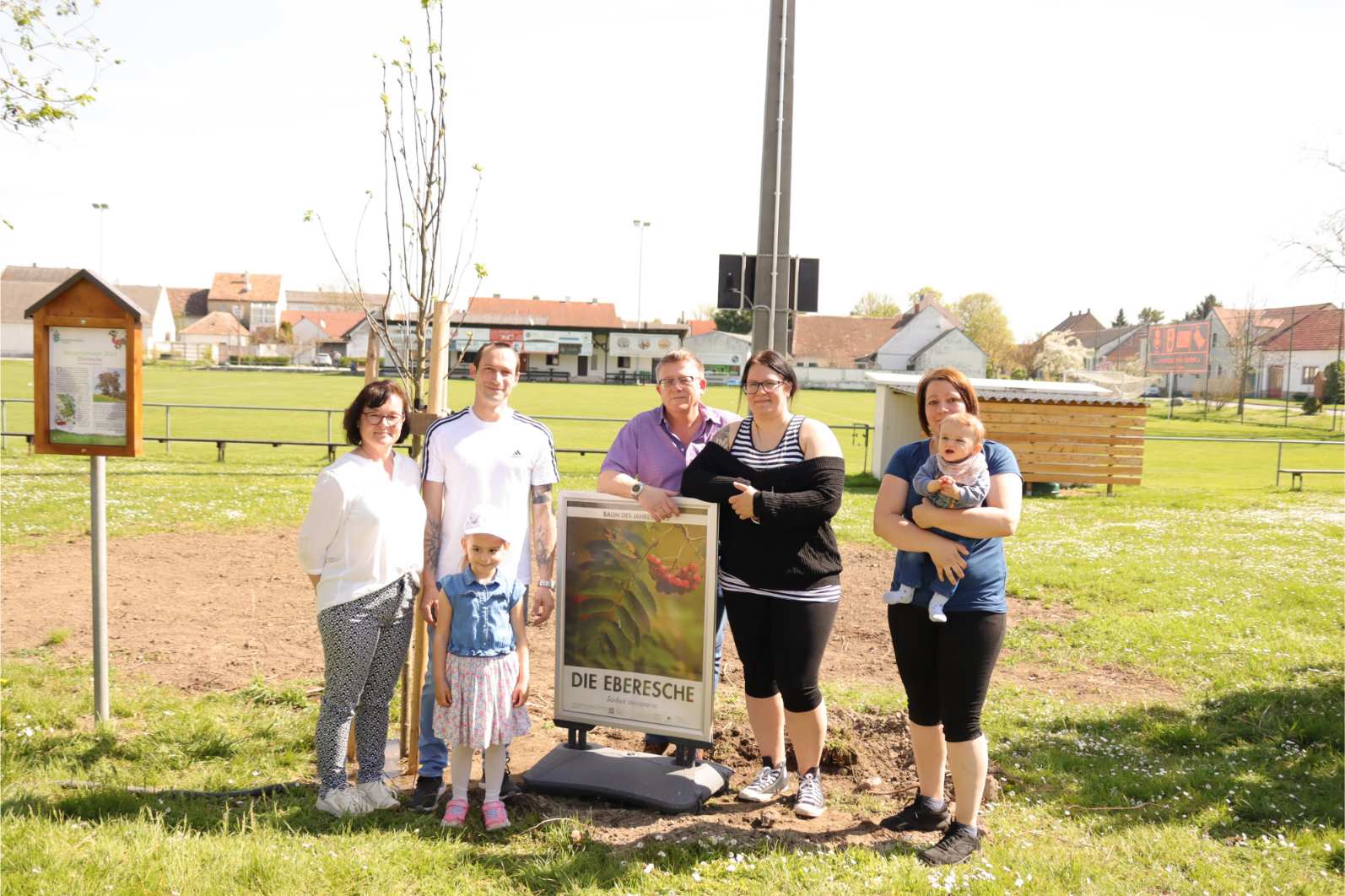 Die Eltern von Pascal Penisch (7. Juli) und Anna Fischer (3. September) pflanzten im Beisein von Pfarrer Nicolaas Jansens, Bürgermeisterin Brigitte Ribisch, Ortsvorsteher Arno Hausensteiner und Dorfgemeinschaftsobmann Gerhard Schmid die Eberresche, welche auch als Vogelbeere bekannt ist. Nach der Heiligen Messe wurde gemeinsam zum zukünftigen Standort marschiert und die Väter machten sich sogleich an die Pflanzung des Jahrgangsbaumes.
